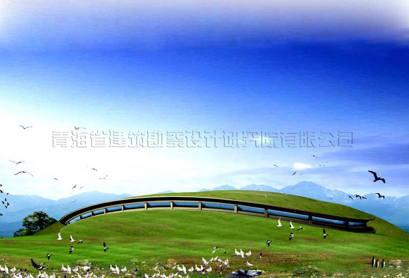 整個建筑為半地下室工程,凸出地面部分在屋面、墻面覆土,并培植草地與原環境融為一體,減少了對鳥類生態、環境的破壞和污染。