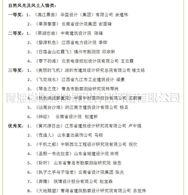 由中國勘察設(shè)計協(xié)會主辦,《中國勘察設(shè)計》雜志社承辦的首屆全國勘察設(shè)計行業(yè)攝影大賽歷時4個月,于2015年7月20日圓滿結(jié)束,本次大賽共收到91個單位501人2348幅參賽作品。經(jīng)過評審委員會兩輪評審,共評選出60個等級獎,20個優(yōu)秀獎,22個優(yōu)秀組織獎。
