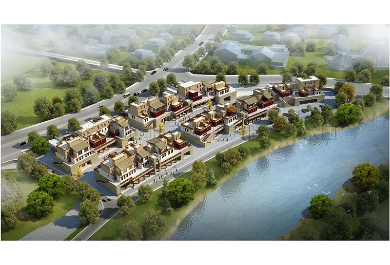 青海省玉樹縣當代濱水休閑區工程位于青海省玉樹縣結古鎮,項目建設用地面積4.286 公頃,總建筑面積約37265.71 平方米,由五個片區、25棟單體建筑組成,建筑層數為三至四層,總戶數138戶。本工程由底層商鋪上部住宅組成的商業步行街,建筑高度16.00米,建設內容是玉樹地震后為受災居民所作的安置住宅及配套設施建設。