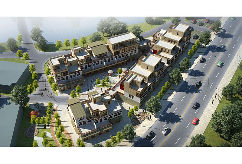 在設計中同時將當地文化的建筑精華與中式圍合式院落的精粹完美的融合在一起,呈現出區域建筑獨有的風范,詮釋居住理想的要素。8個獨立的住宅建筑組團構成的圍合式建筑院落,讓人們的生活能夠享受到屬于自己的相對獨立的生活花園景觀,締造居住生活的理想。形成了連續的商業步行街,結合商業街景觀締造舒適精品的購物環境。使居住商業配套成為有機整體,為居民創造良好的居住生活品質。
